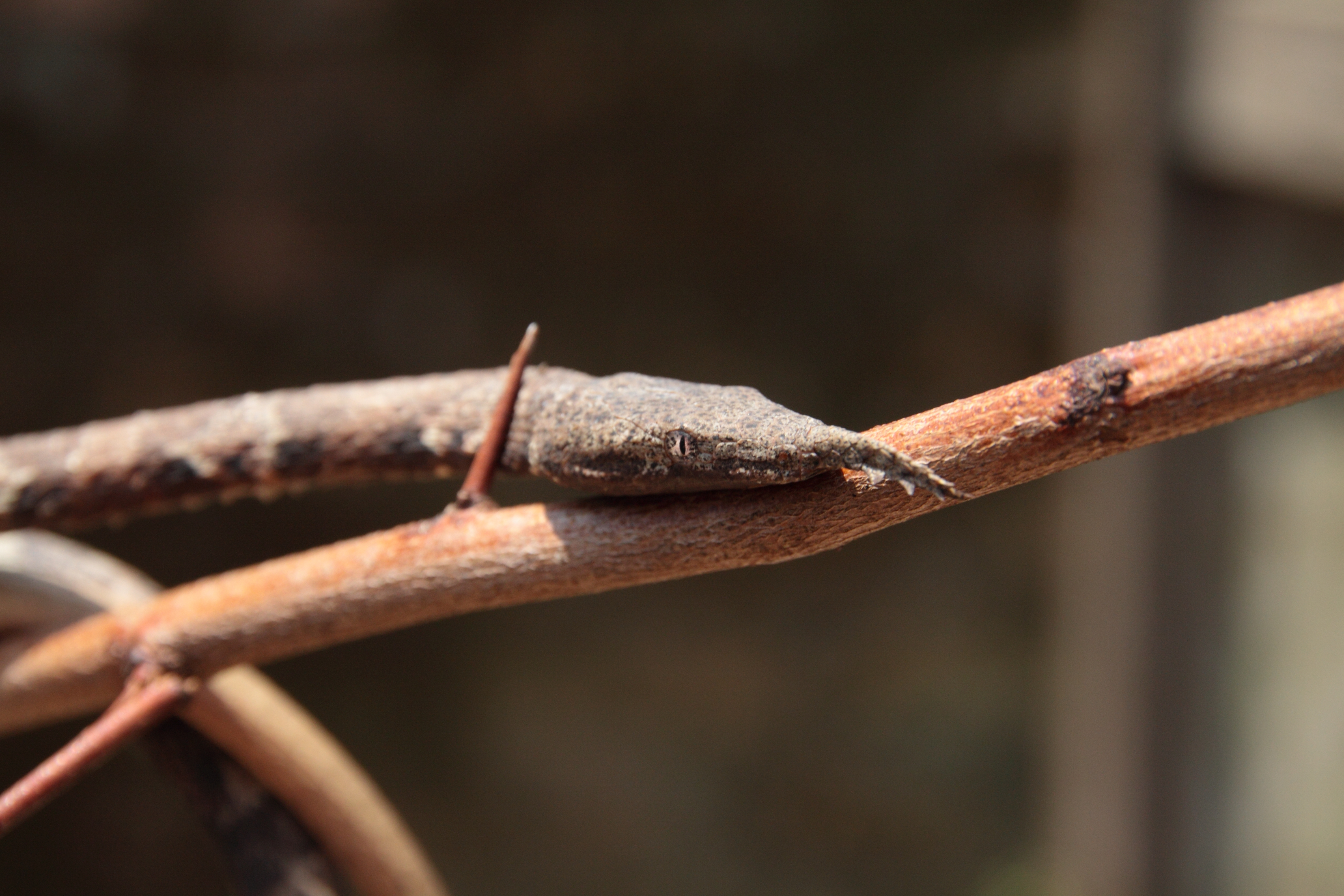 During a semester abroad with the School for International Training in Madagascar, I conducted an observational field study on the Madagascar leaf-nosed snake, Langaha madagascariensis. This study recorded previously undocumented aspects of its ecology including habitat preference, foraging strategies, and diet. The resulting article is published in the journal Herpetological Conservation and Biology [PDF].